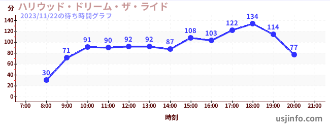 • ハリウッド・ドリーム・ザ・ライド$B$N(B2023年11月22日の待ち時間