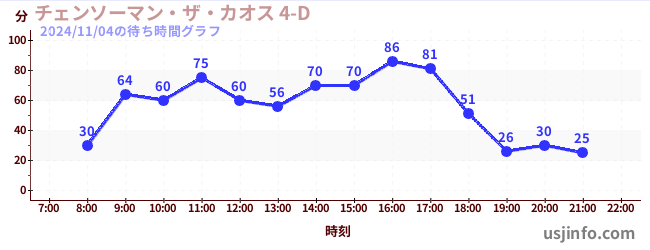• チェンソーマン・ザ・カオス 4-D$B$N(B2024年11月04日の待ち時間