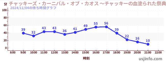 • チャッキーズ・カーニバル・オブ・カオス ~チャッキーの血塗られた祭典~$B$N(B2024年11月04日の待ち時間