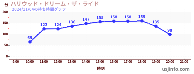 • ハリウッド・ドリーム・ザ・ライド〜バックドロップ〜$B$N(B2024年11月04日の待ち時間
