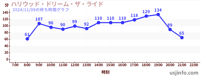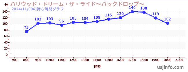 • ハリウッド・ドリーム・ザ・ライド〜バックドロップ〜$B$N(B2024年11月09日の待ち時間