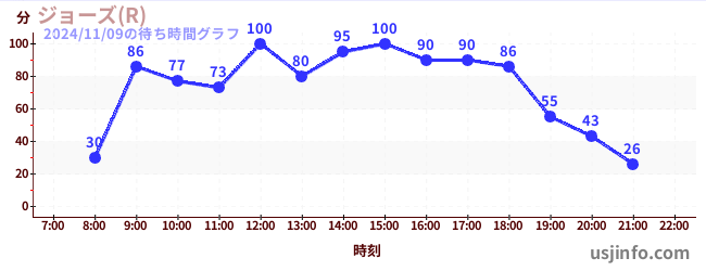 • ジョーズ(R)$B$N(B2024年11月09日の待ち時間