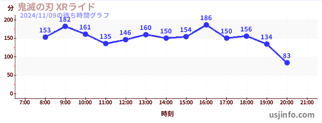• 鬼滅の刃 XRライド$B$N(B2024年11月09日の待ち時間