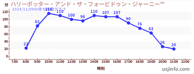 • ハリーポッター・アンド・ザ・フォービドゥン・ジャーニー™$B$N(B2024年11月09日の待ち時間