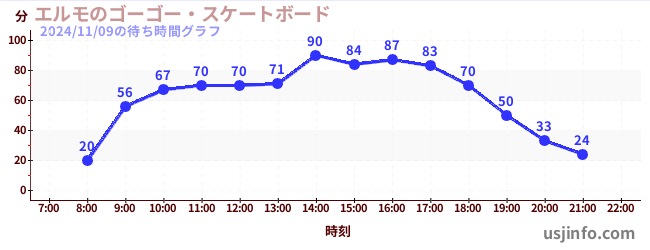 • エルモのゴーゴー・スケートボード$B$N(B2024年11月09日の待ち時間