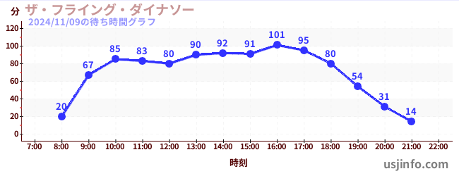 • ザ・フライング・ダイナソー$B$N(B2024年11月09日の待ち時間