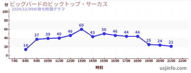 • ビッグバードのビックトップ・サーカス$B$N(B2024年11月09日の待ち時間