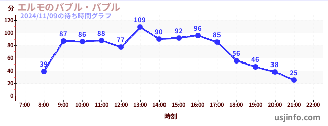 • エルモのバブル・バブル$B$N(B2024年11月09日の待ち時間