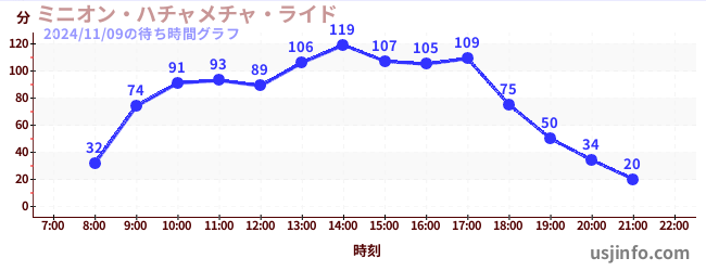 • ミニオン・ハチャメチャ・ライド$B$N(B2024年11月09日の待ち時間