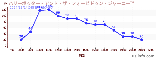• ハリーポッター・アンド・ザ・フォービドゥン・ジャーニー™$B$N(B2024年11月14日の待ち時間