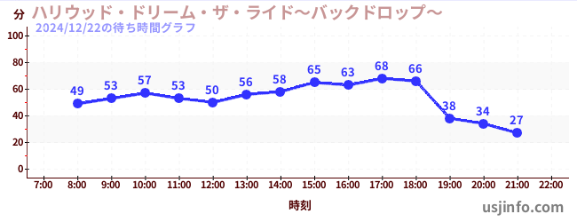 • ハリウッド・ドリーム・ザ・ライド〜バックドロップ〜$B$N(B2024年12月22日の待ち時間
