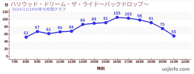 • ハリウッド・ドリーム・ザ・ライド〜バックドロップ〜$B$N(B2024年12月24日の待ち時間