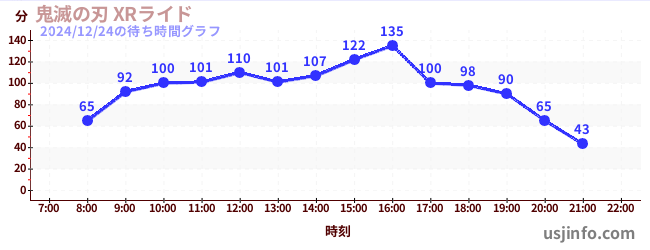 • 鬼滅の刃 XRライド$B$N(B2024年12月24日の待ち時間