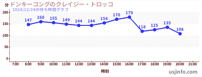 • ドンキーコングのクレイジー・トロッコ$B$N(B2024年12月24日の待ち時間