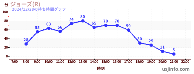 • ジョーズ(R)$B$N(B2024年12月28日の待ち時間