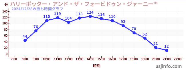 • ハリーポッター・アンド・ザ・フォービドゥン・ジャーニー™$B$N(B2024年12月28日の待ち時間