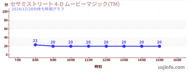 • セサミストリート 4-D ムービーマジック(TM)$B$N(B2024年12月28日の待ち時間