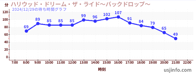 • ハリウッド・ドリーム・ザ・ライド〜バックドロップ〜$B$N(B2024年12月29日の待ち時間
