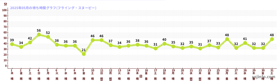 • フライング・スヌーピー$B$N(B2025年05月01日のの一日平均待ち時間