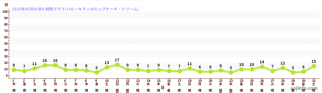 • ハローキティのカップケーキ・ドリーム$B$N(B2025年05月01日のの一日平均待ち時間