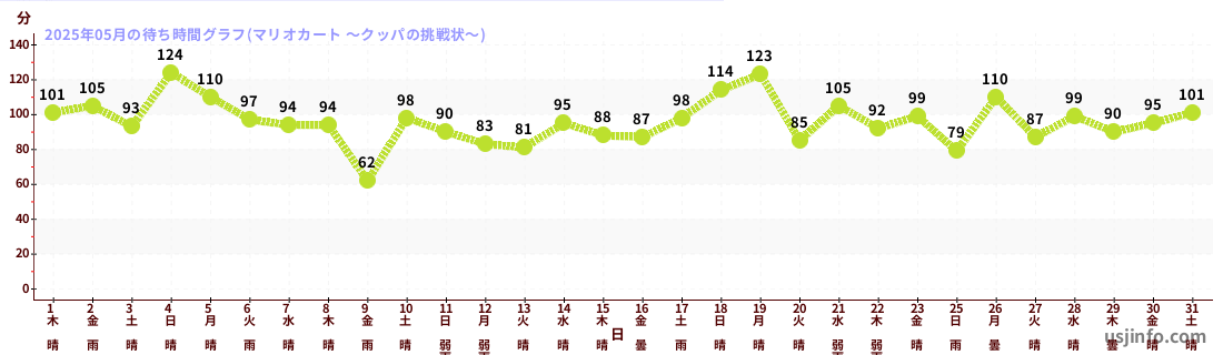 • マリオカート ~クッパの挑戦状~$B$N(B2025年05月01日のの一日平均待ち時間