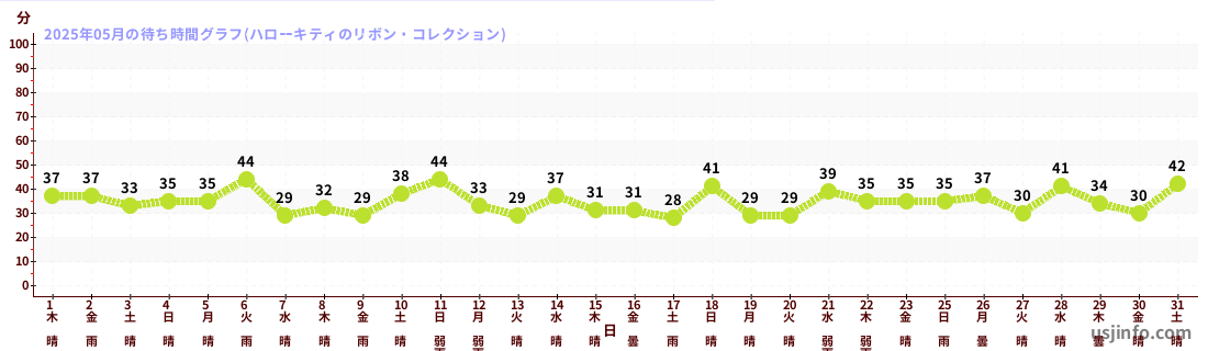 • ハローキティのリボン・コレクション$B$N(B2025年05月01日のの一日平均待ち時間
