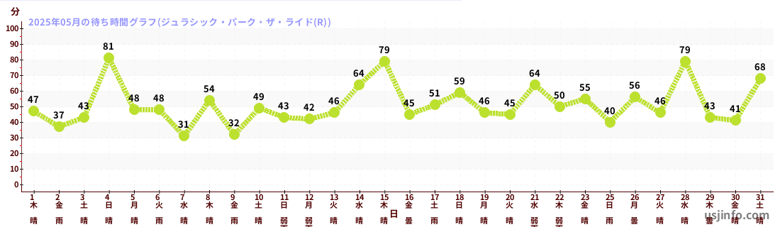 • ジョーズ(R)$B$N(B2025年05月01日のの一日平均待ち時間
