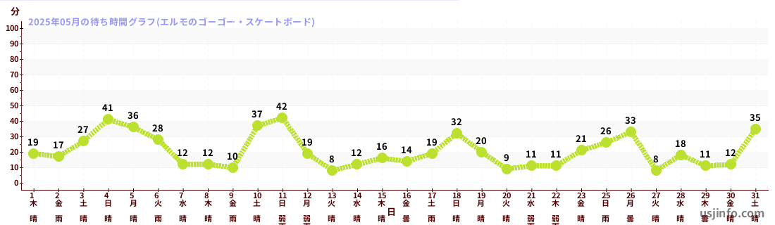 • エルモのゴーゴー・スケートボード$B$N(B2025年05月01日のの一日平均待ち時間