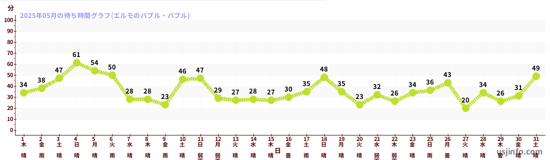 • エルモのバブル・バブル$B$N(B2025年05月01日のの一日平均待ち時間