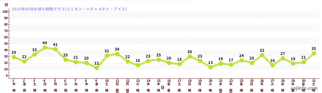 • ミニオン・ハチャメチャ・アイス$B$N(B2025年05月01日のの一日平均待ち時間