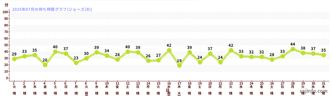 • ジョーズ(R)$B$N(B2025年07月01日のの一日平均待ち時間