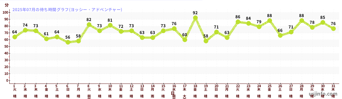 • ヨッシー・アドベンチャー$B$N(B2025年07月01日のの一日平均待ち時間