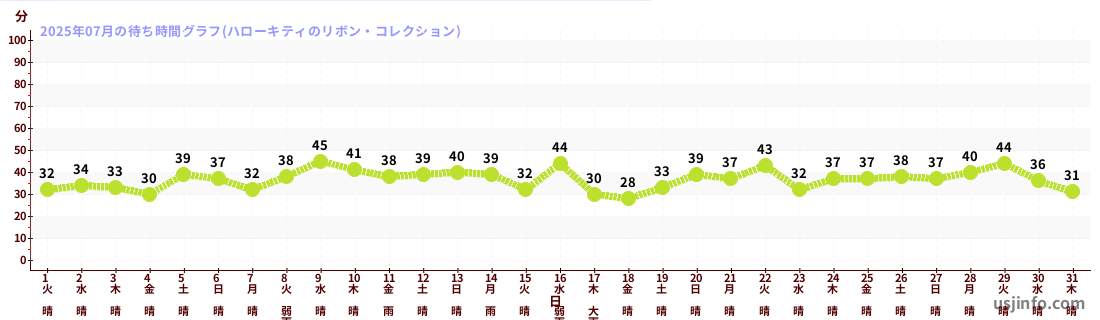 • ハローキティのリボン・コレクション$B$N(B2025年07月01日のの一日平均待ち時間
