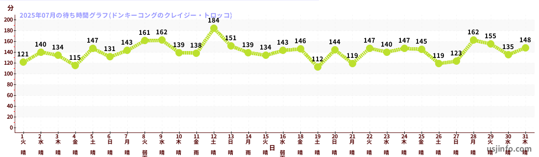 • ドンキーコングのクレイジー・トロッコ$B$N(B2025年07月01日のの一日平均待ち時間