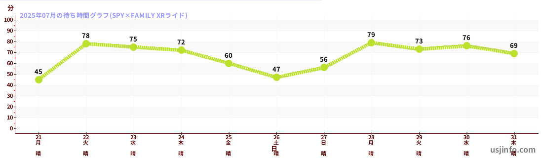 • SPY×FAMILY XRライド$B$N(B2025年07月01日のの一日平均待ち時間
