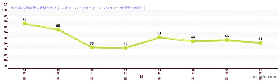 • ミニオン・ハチャメチャ・ライド$B$N(B2025年07月01日のの一日平均待ち時間
