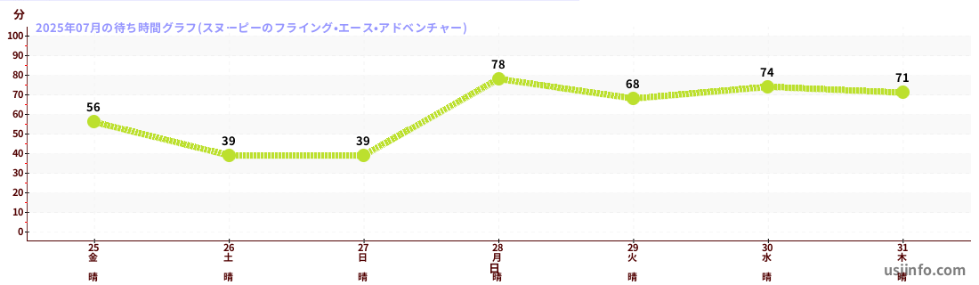 • フライング・スヌーピー$B$N(B2025年07月01日のの一日平均待ち時間