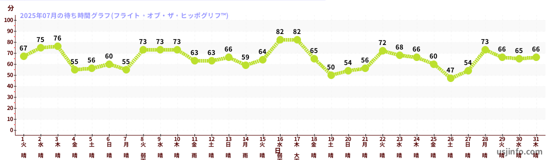 • フライト・オブ・ザ・ヒッポグリフ™$B$N(B2025年07月01日のの一日平均待ち時間
