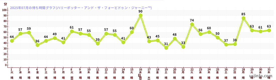 • ハリーポッター・アンド・ザ・フォービドゥン・ジャーニー™$B$N(B2025年07月01日のの一日平均待ち時間