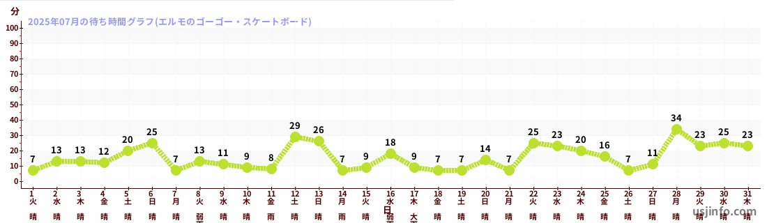 • エルモのゴーゴー・スケートボード$B$N(B2025年07月01日のの一日平均待ち時間