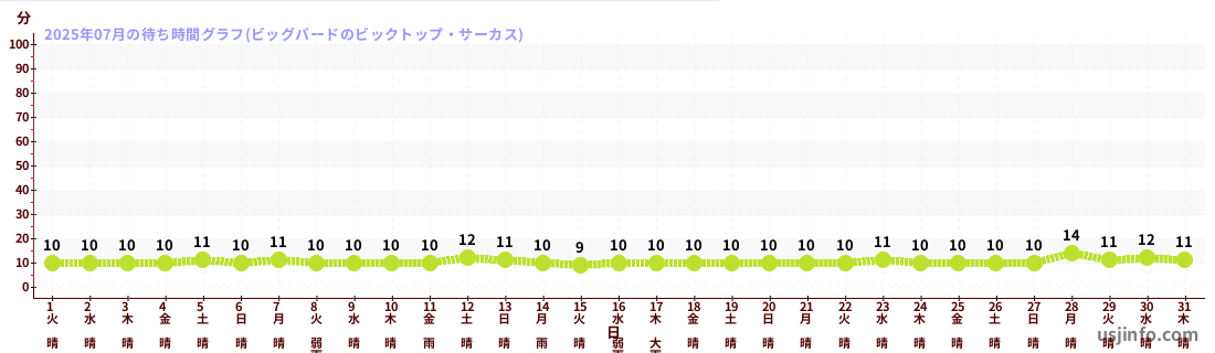 • ビッグバードのビックトップ・サーカス$B$N(B2025年07月01日のの一日平均待ち時間