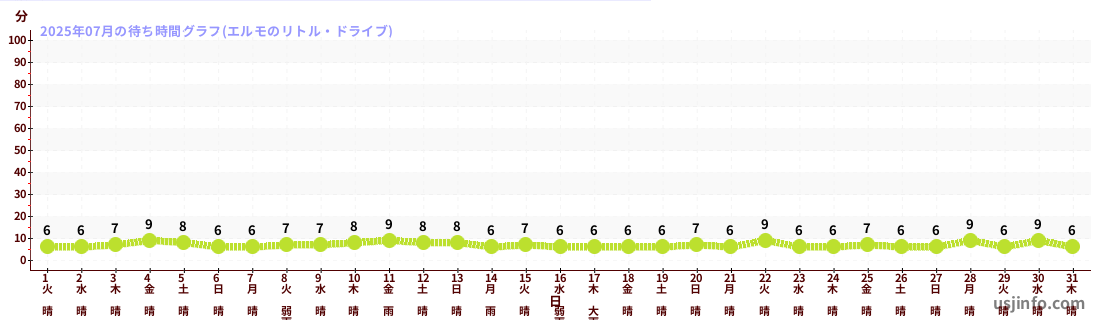 • エルモのリトル・ドライブ$B$N(B2025年07月01日のの一日平均待ち時間