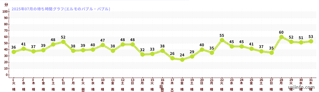 • エルモのバブル・バブル$B$N(B2025年07月01日のの一日平均待ち時間