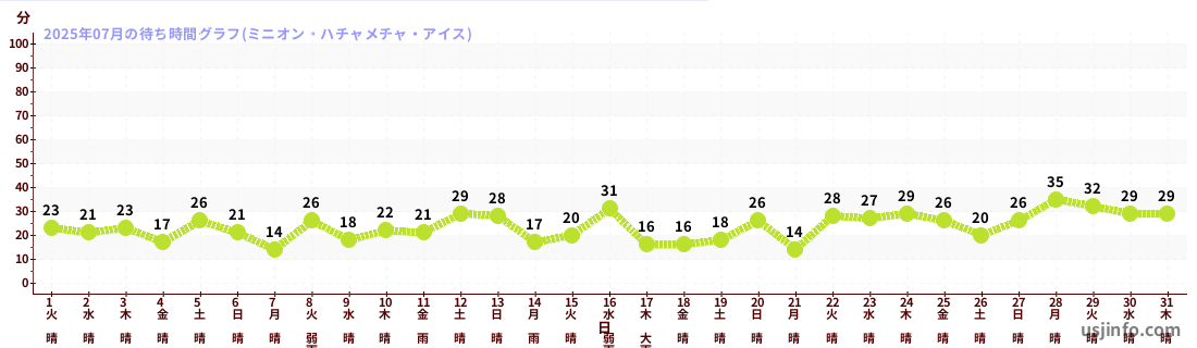 • ミニオン・ハチャメチャ・アイス$B$N(B2025年07月01日のの一日平均待ち時間