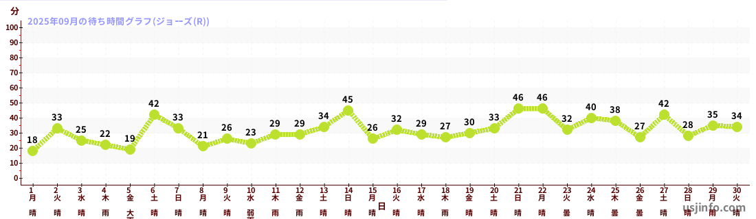 • ジョーズ(R)$B$N(B2025年09月01日のの一日平均待ち時間