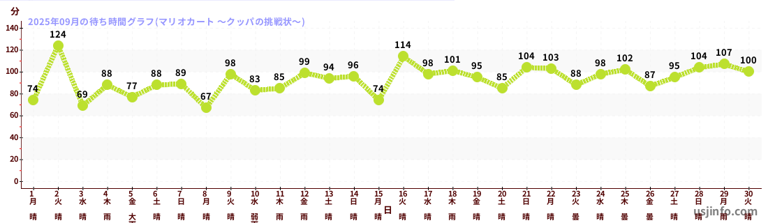 • マリオカート ~クッパの挑戦状~$B$N(B2025年09月01日のの一日平均待ち時間