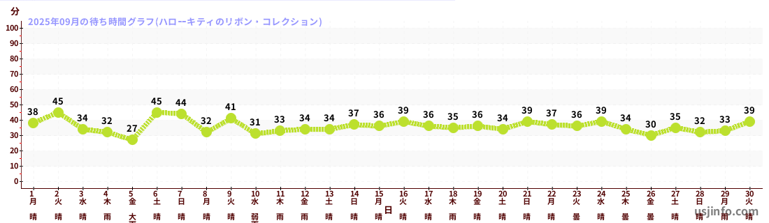 • ハローキティのリボン・コレクション$B$N(B2025年09月01日のの一日平均待ち時間