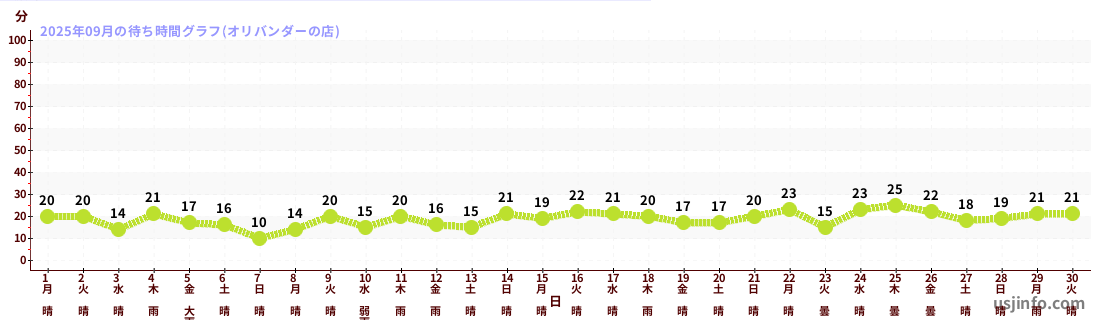 • オリバンダーの店$B$N(B2025年09月01日のの一日平均待ち時間