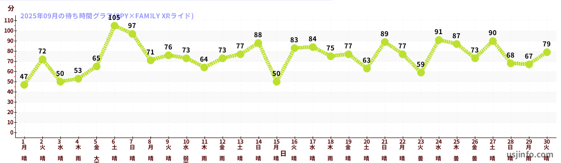 • SPY×FAMILY XRライド$B$N(B2025年09月01日のの一日平均待ち時間