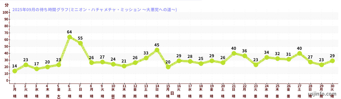 • ミニオン・ハチャメチャ・ミッション ~大悪党への道~$B$N(B2025年09月01日のの一日平均待ち時間